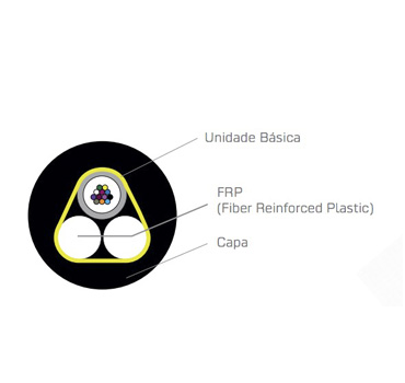 Sua composição o torna indicado para interligar equipamentos ópticos em redes urbanas ou acesso em rede de assinantes para vãos de até 80 metros, sem uso de mensageiro.